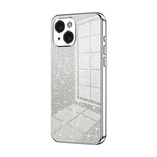 Estuche para Teléfono iPhone 15 Galvanizado con Polvo de Brillo Degradado (Plateado)