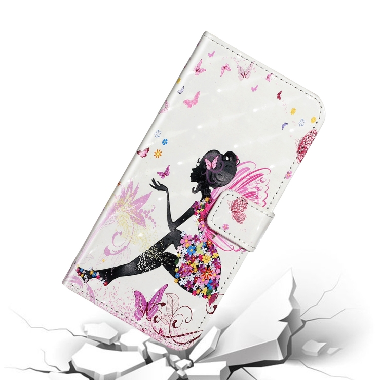 Funda de Teléfono iPhone 15 Cuero Dibujo 3D En Relieve al Óleo (Hada de Las Flores)