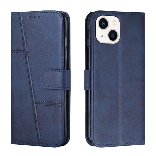 Funda de Teléfono iPhone 15 Cuero Textura de Becerro Cosida con Hebilla (Azul)