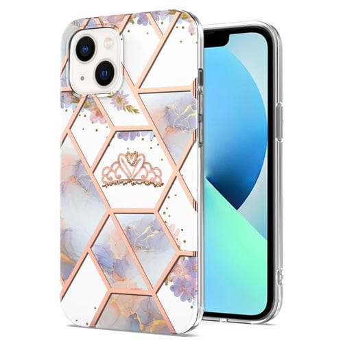 Funda para iPhone 15 TPU Galvanoplastia Empalme Mármol Patrón de Flores a Prueba de Golpes (Corona)