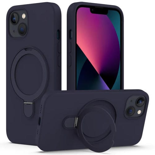 For iPhone 15 MagSafe Magnetic Liquid Silicone Phone Case with Ring Holder (Midnight Blue)