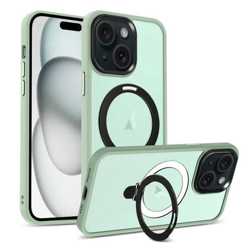 For iPhone 15 MagSafe Holder Skin-feel PC Hybrid TPU Phone Case(Matcha Green)