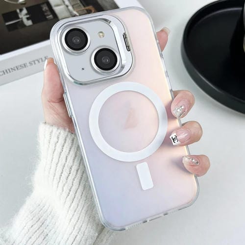 For iPhone 15 MagSafe Lens Holder PC Hybrid TPU Phone Case (White)