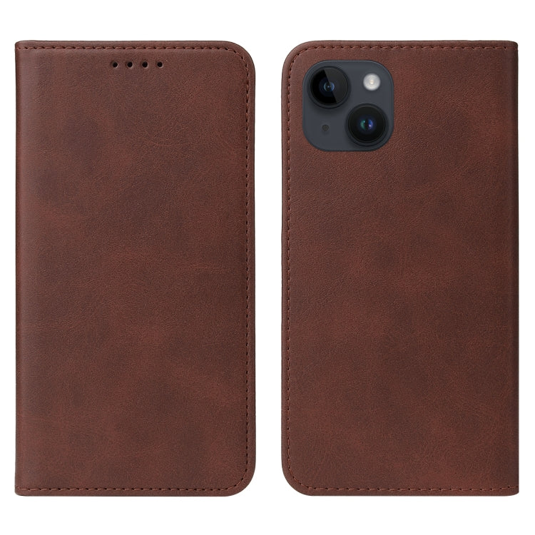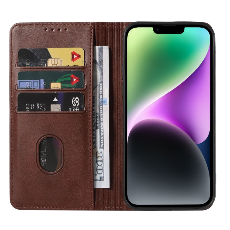 Funda de Cuero para iPhone 15 Plus con Cierre Magnético (Marrón)