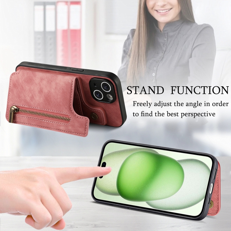 Funda para iPhone 15 Plus Cuero Retro con Cremallera y Billetera (Rosa)