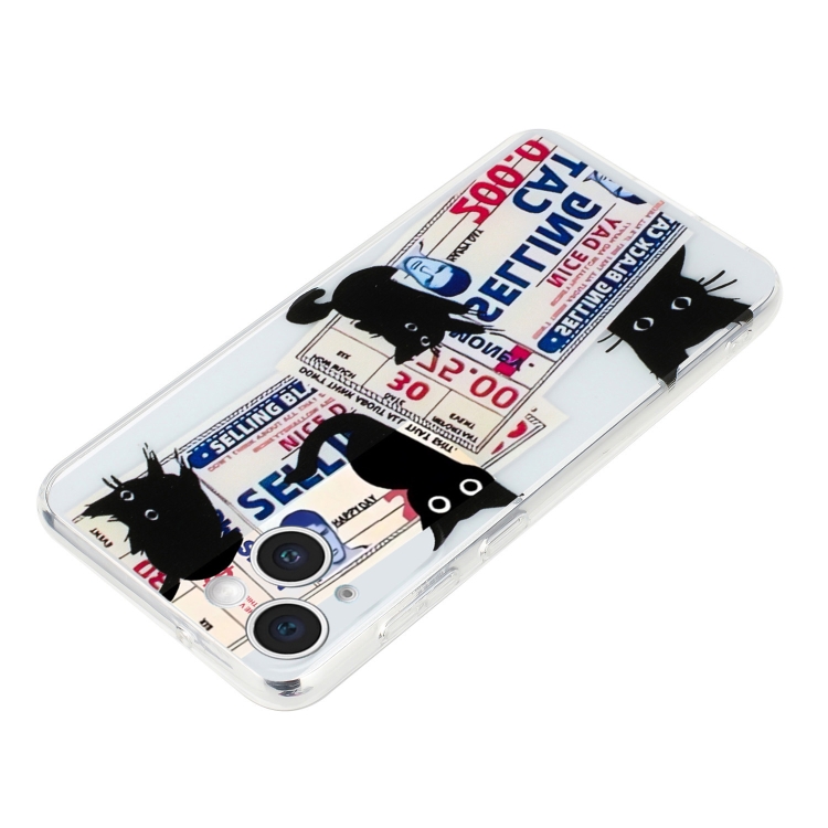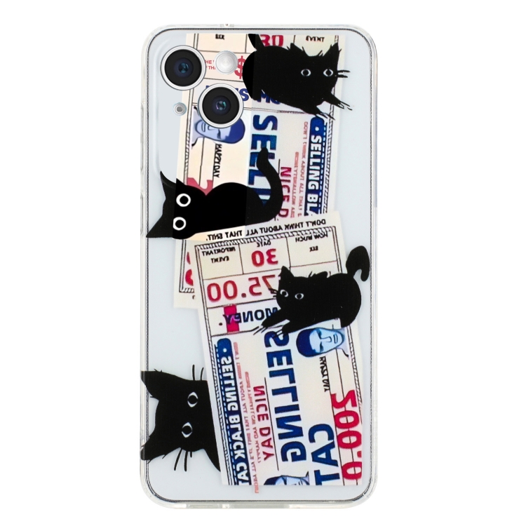 Funda para Teléfono TPU iPhone 15 Plus Patrón Pintura Colorida (Gato Negro)