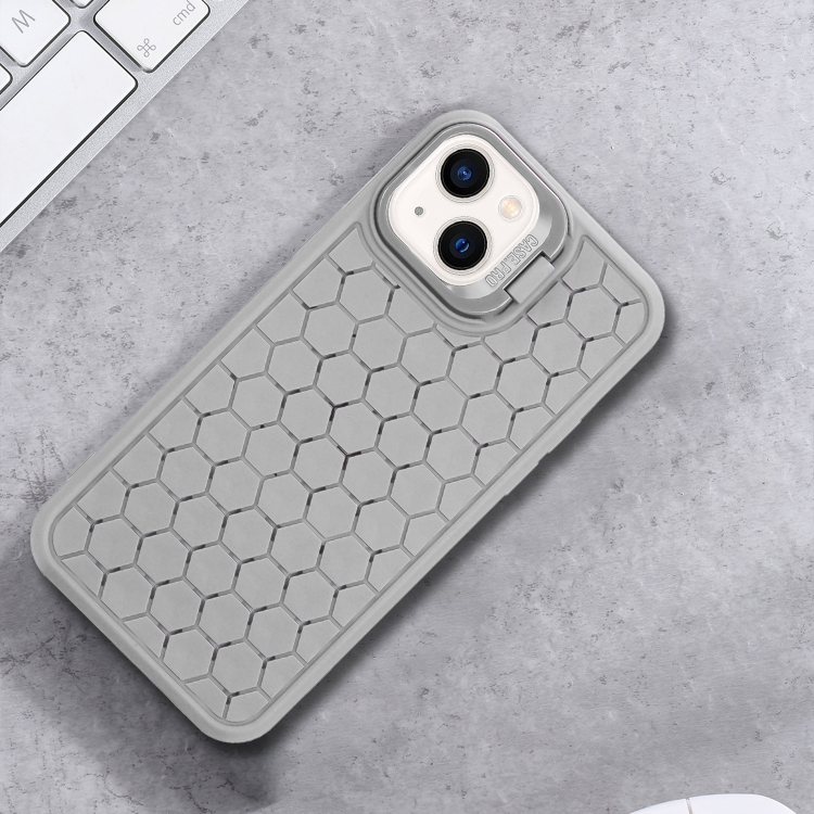 Funda para Teléfono TPU iPhone 15 Plus Soporte Radiante Panal con Cordón (Gris)