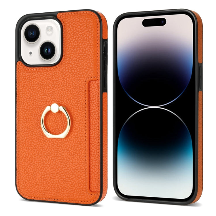 Funda Trasera para iPhone 15 Plus Ring Card Litchi Cuero (Naranja)