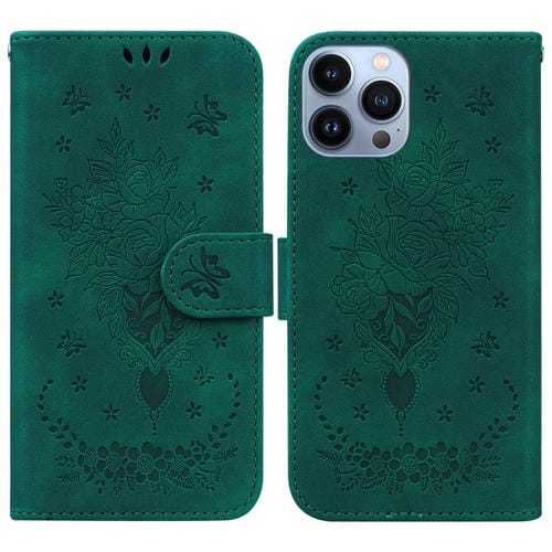 Estuche para Teléfono iPhone 15 Pro Max Butterfly Rose Cuero En Relieve (Verde)
