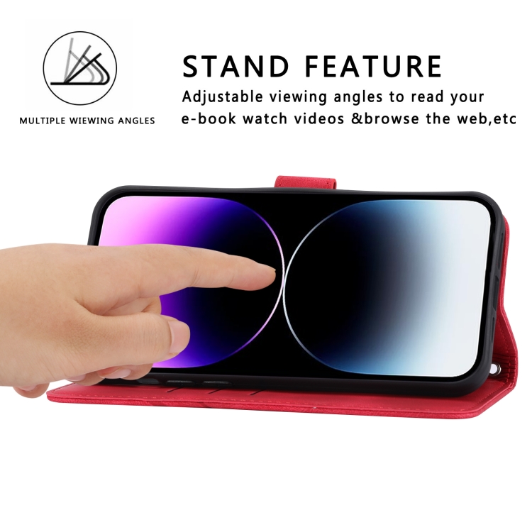Funda para iPhone 15 Pro Max Cuero Línea en Relieve con Cordón (Rojo)