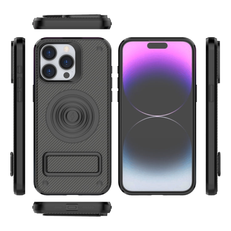 For iPhone 15 Pro Max Phone Case PC+TPU Carbon Fiber Texture with Metal Kickstand(Black)