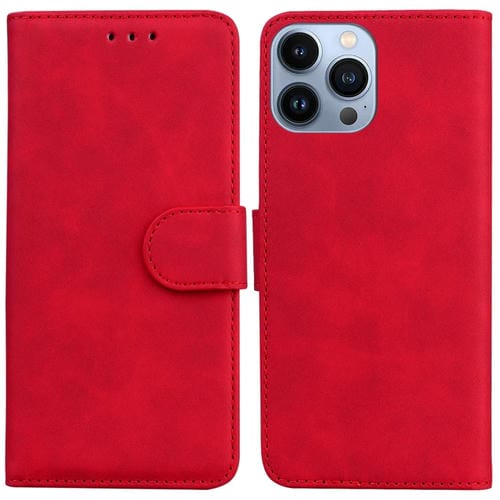 Funda de Cuero para iPhone 15 Pro Max Skin Feel Pure Color Flip (Rojo)