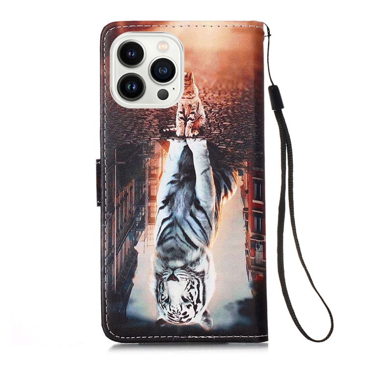 Funda de teléfono iPhone 15 Pro cuero tejido liso patrón gatos y tigres
