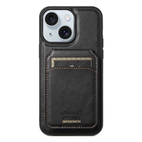 Funda para iPhone 15 Suteni H15 Magsafe Oil Eax Cuero con Billetera Desmontable (Negro)