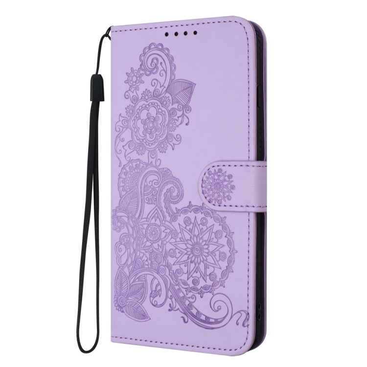 Funda para Teléfono iPhone 16 Pro Datura Flower Cuero con Tapa En Relieve (Púrpura)