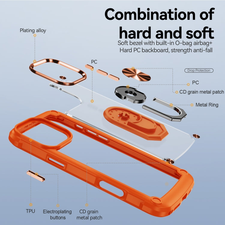 Funda para Teléfono iPhone 16 Pro Max TPU + PC con Protección de Lente y Soporte para Anillo (Naranja)