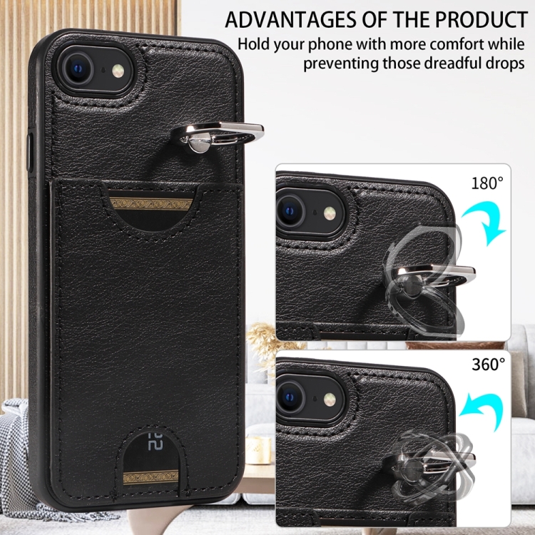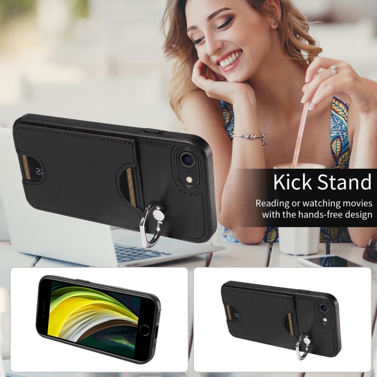 Funda para Teléfono iPhone 2022/2020/8/7 con Soporte Anillo y Ranura Tarjeta (Negro)