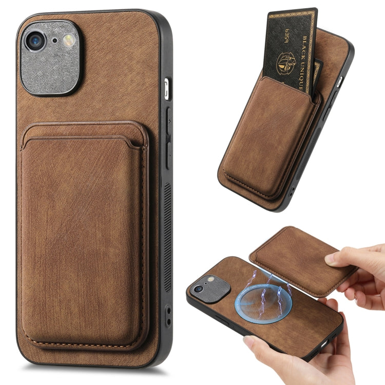 Funda de Teléfono para iPhone 6/6S Magnética con Bolsa de Tarjeta de Cuero Retro (Marrón)
