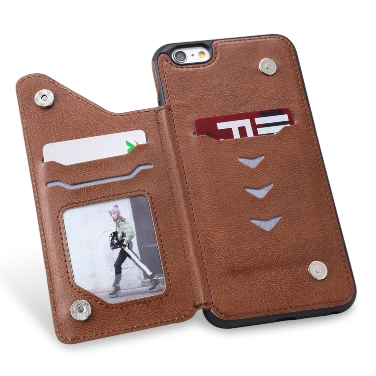 Funda Protectora para iPhone 6 con Patrón de Árbol de Gato, Ranuras para Tarjetas y Marco de Fotos (Marrón)