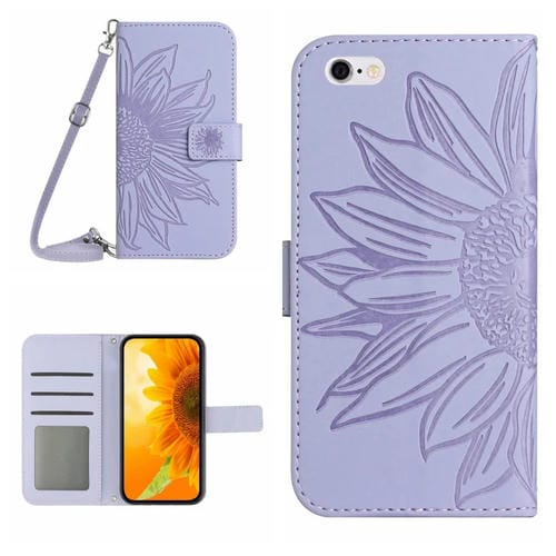 For iPhone 6 Skin Feel Sun Flower Pattern Flip Leather Phone Case Cover with Lanyard(Purple)