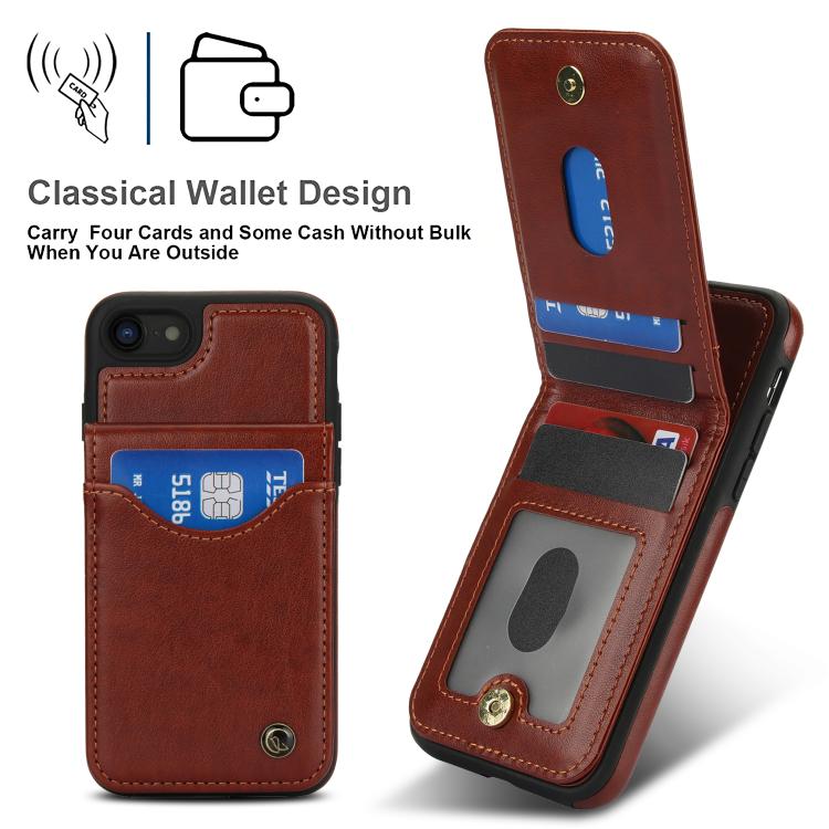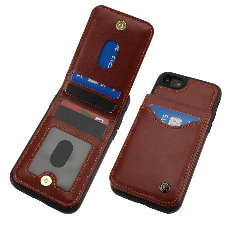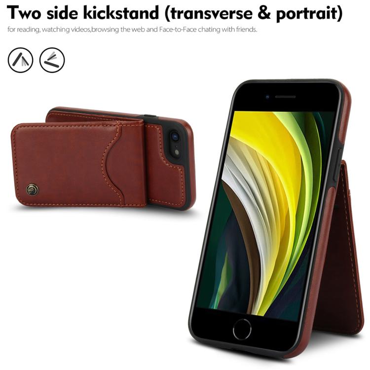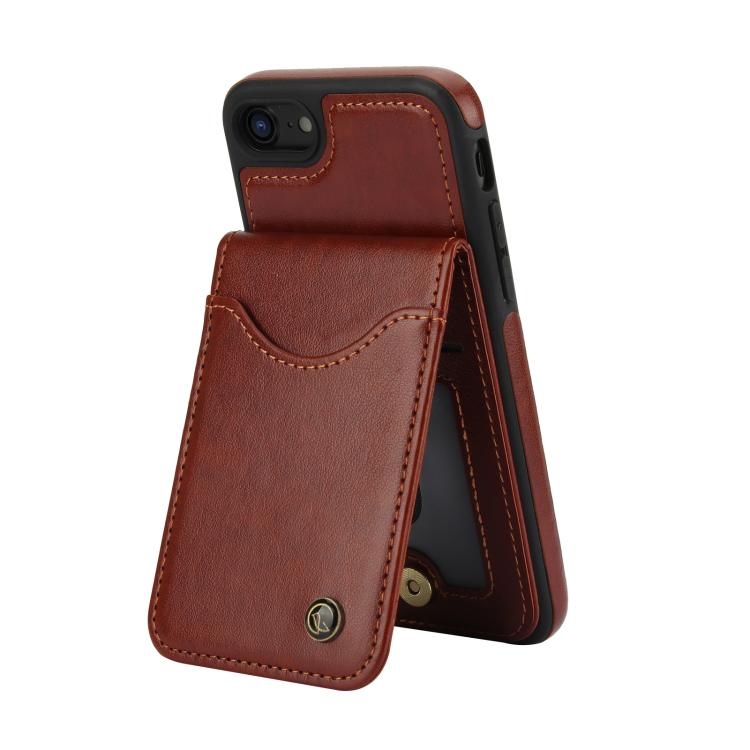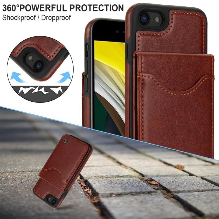 Funda de Cuero Awquer para iPhone 7/8/Se 2022 con Tapa Vertical Tarjetero y Soporte (Marrón)