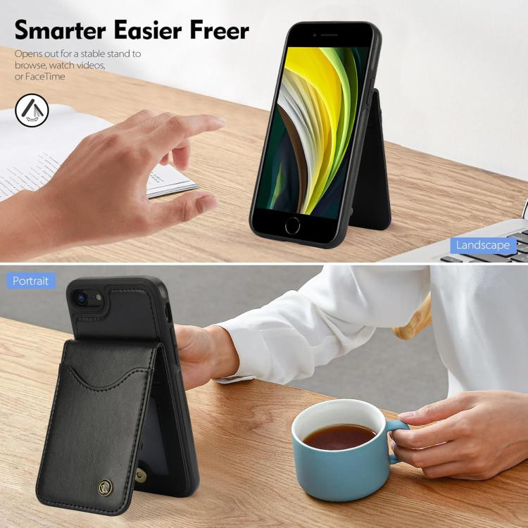 Funda de Cuero Awquer para iPhone 7/8/Se 2022 con Tapa Vertical Tarjetero y Soporte (Negro)