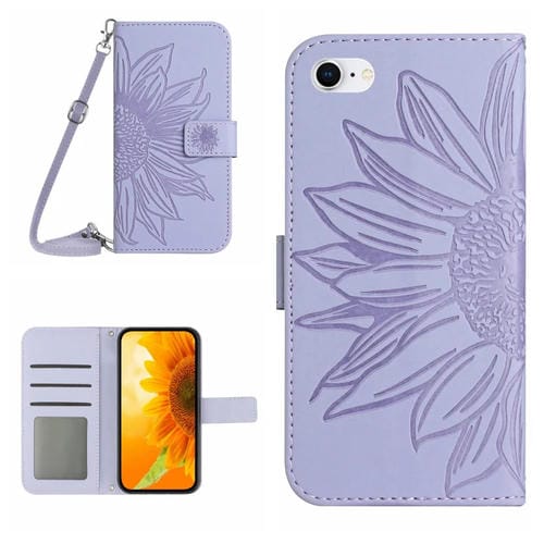 For iPhone 7/8 Skin Feel Sun Flower Pattern Flip Leather Phone Case Cover with Lanyard (Purple)