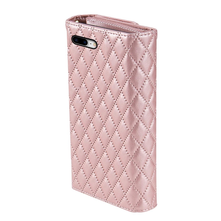 Funda para Teléfono iPhone 7 Plus/8 Plus Cuero Rómbico con Billetera MultiTarjeta con Cremallera (Oro Rosa)