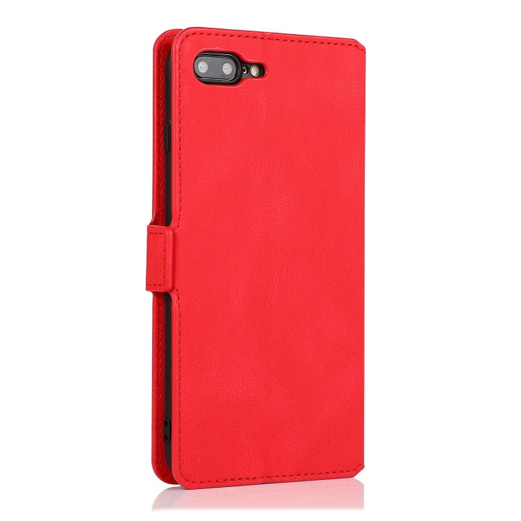 Estuche de Cuero iPhone 8 Plus 7 Plus Cierre Magnético Tapa Horizontal Soporte Ranuras Tarjetas Marco Fotos Billetera (Rojo)