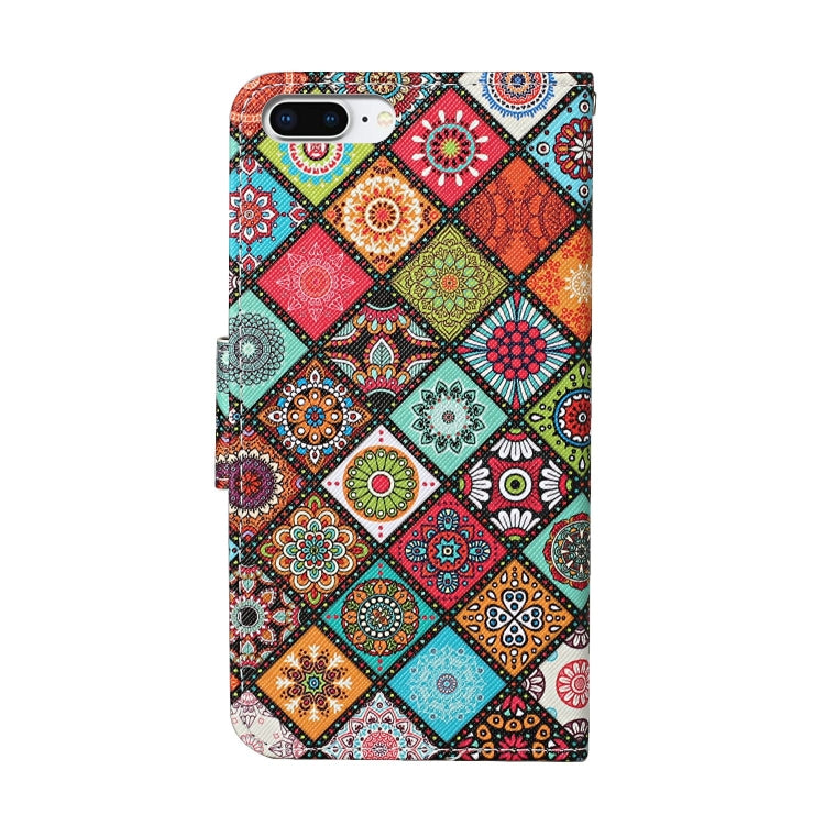 Estuche de Cuero Abatible Horizontal para iPhone 8 Plus 7 Plus con Patrón de Dibujo Coloreado Soporte Ranuras y Billetera (Folk-Custom)