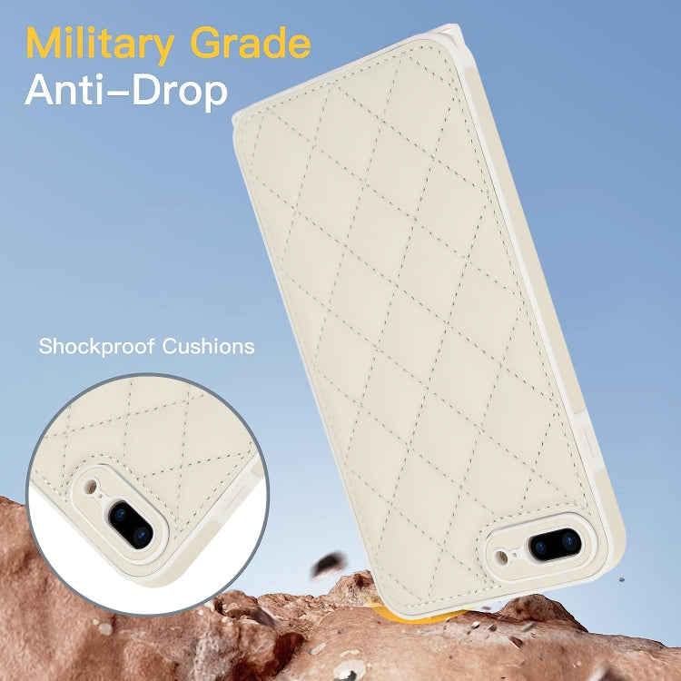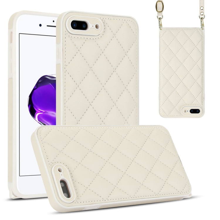 Funda para Teléfono iPhone 8 Plus/7 Plus Textura Rómbica Cordón Doble (Blanco)