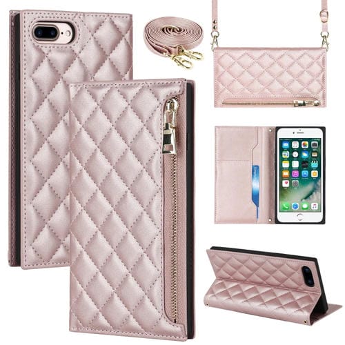 Funda de Cuero con Cremallera para iPhone 8 Plus y 7 Plus Grid Texture (Oro Rosa)