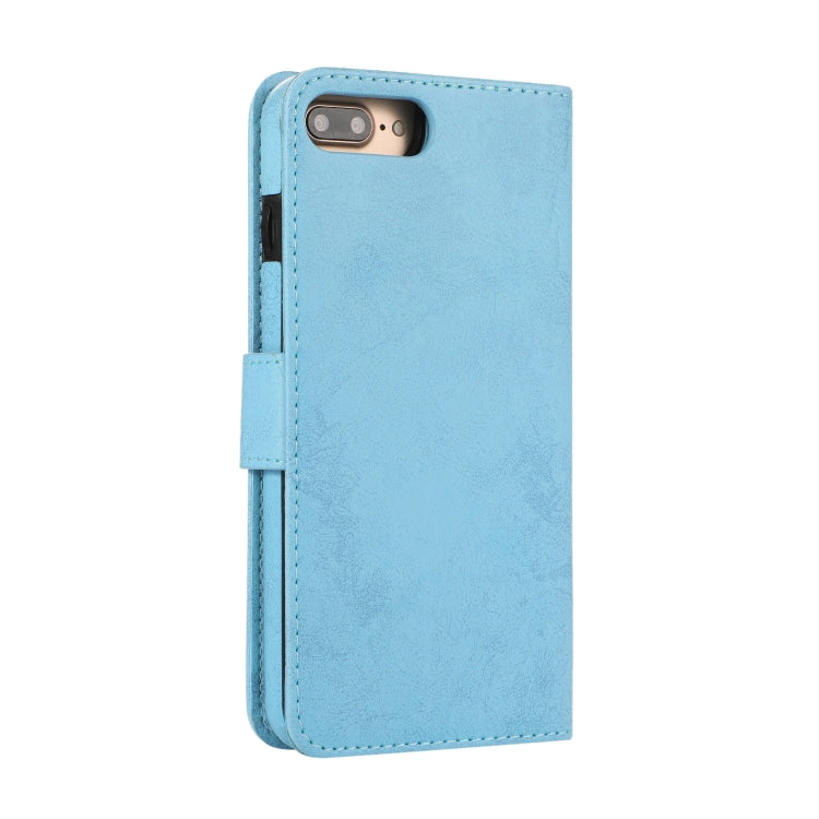Estuche para iPhone 8 Plus y 7 Plus Klt888-2 Cuero TPU + PU 2 en 1 Tapa Horizontal Magnética Desmontable Soporte Ranuras Tarjetas Marco Fotos Billetera (Azul Cielo)