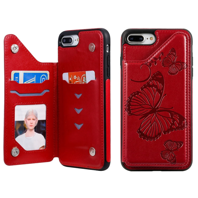 Funda Protectora para iPhone 8 Plus y 7 Plus Patrón Mariposas a Prueba de Golpes con Soporte y Ranuras para Tarjetas (Rojo)