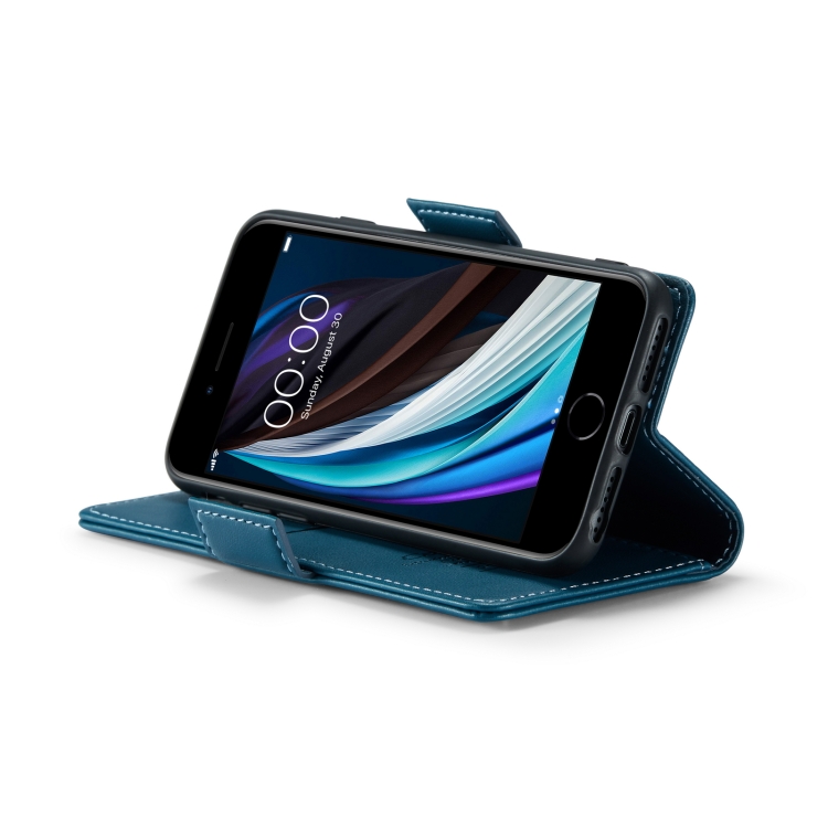 Funda de Cuero Caseme 023 para iPhone SE 2022/SE 2020/6/7/8 con Hebilla de Mariposa y Textura Litchi (Azul)