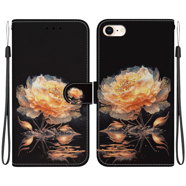 Funda para Teléfono iPhone SE 2022/SE 2020 Cuero Dibujo Coloreado Textura de Cristal (Peonía Dorada)