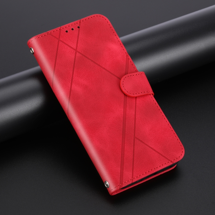 Funda de Cuero para iPhone 16E con Línea En Relieve y Cordón (Rojo)