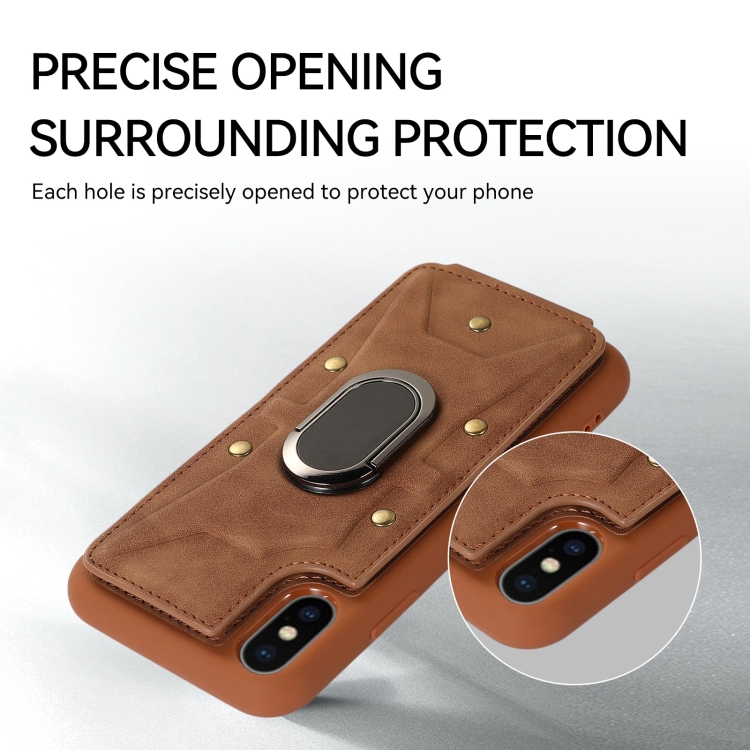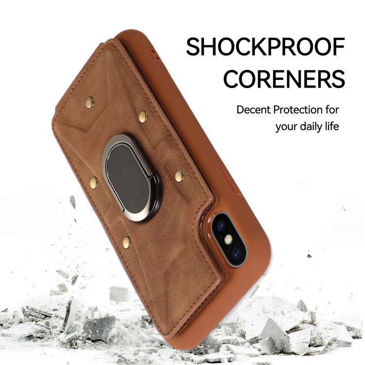 Funda para iPhone X Xs Armor Ring Wallet Back Cover Phone Case (Marrón)