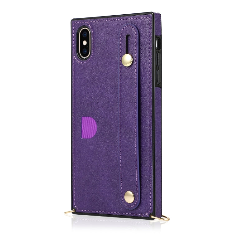 Correa para Muñeca Pu + TPU Estuche Protector para iPhone X / Xs a Prueba de Golpes con Cordón Cruzado Soporte y Ranura para Tarjeta (Púrpura)