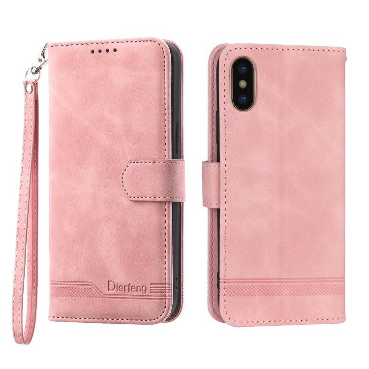 Funda para iPhone X/Xs Dierfeng Dream Line TPU y Cuero PU (Rosa)