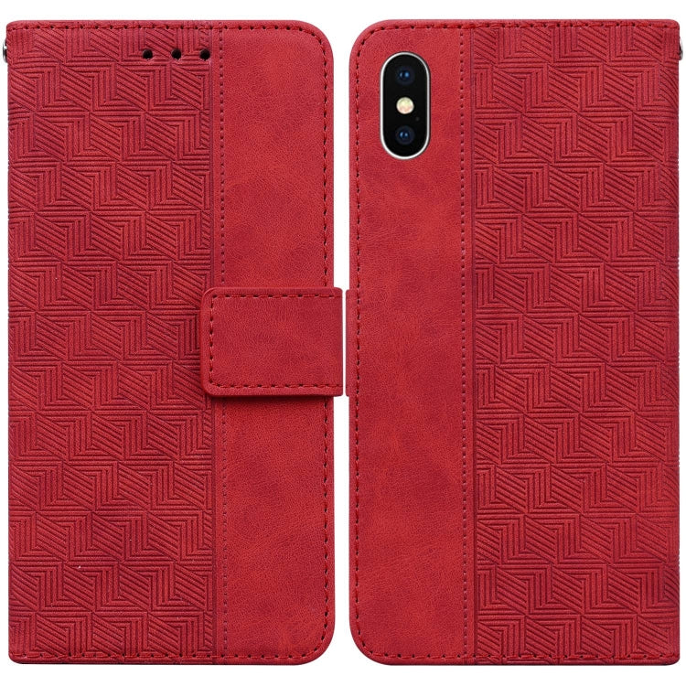 Estuche para Teléfono iPhone X Xs Cuero Relieve Geométrico (Rojo)