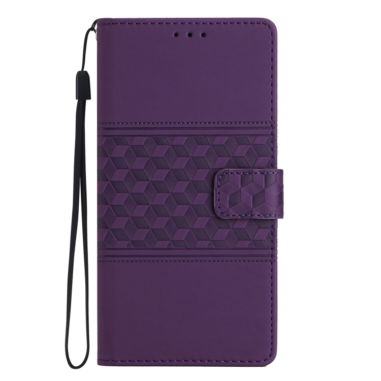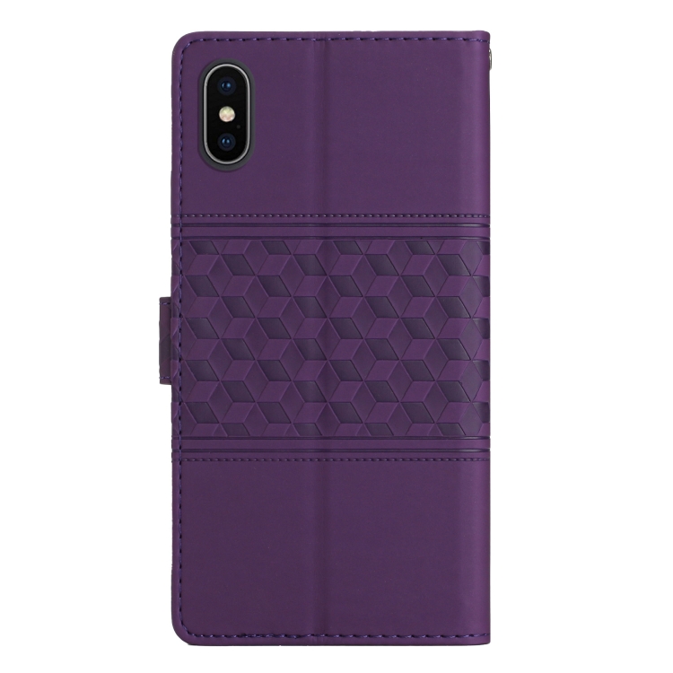 Estuche para teléfono iPhone X Xs cuero piel en relieve con cordón (Púrpura)