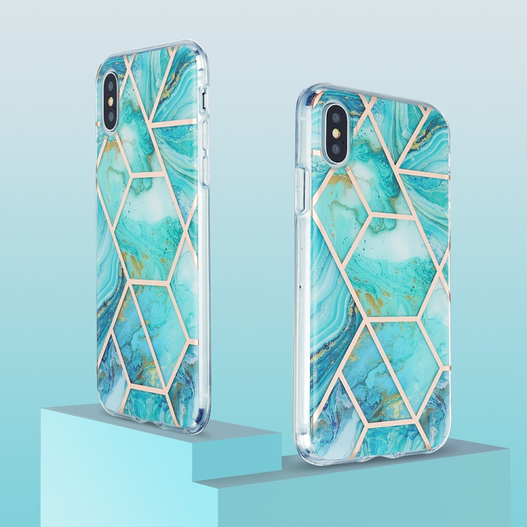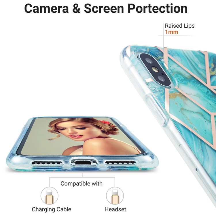 Estuche Protector TPU iPhone X Xs Patrón Mármol Galvanizado 3D (Verde)