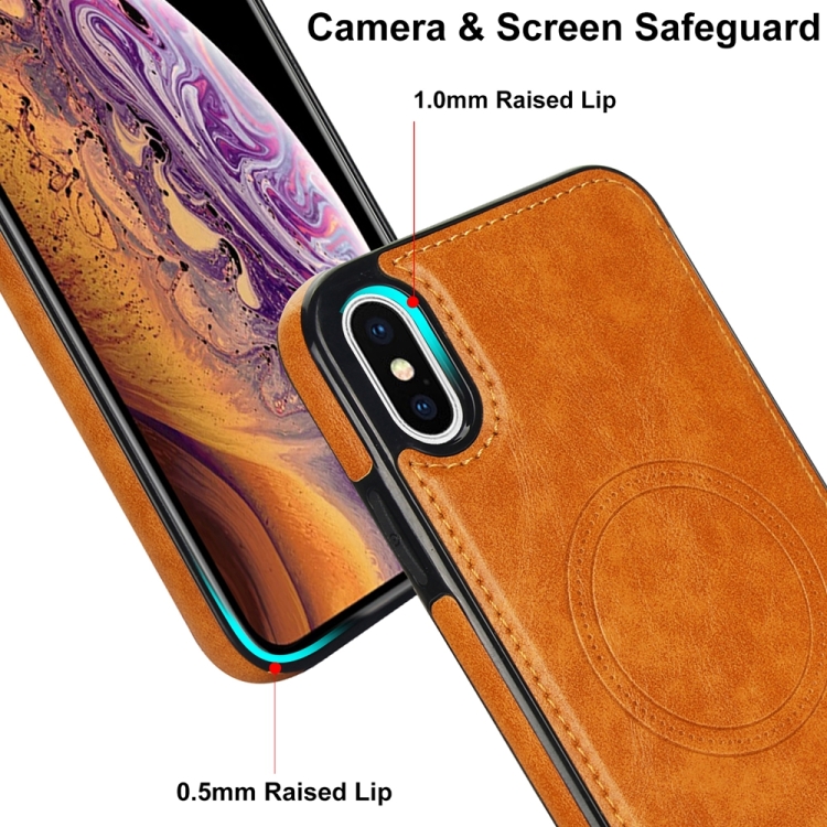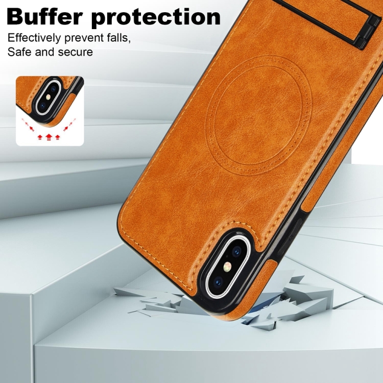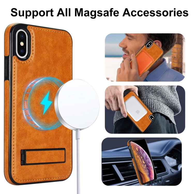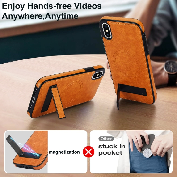 Funda de Teléfono iPhone X / Xs Magsafe Soporte Invisible Cuero Retro (Amarillo)