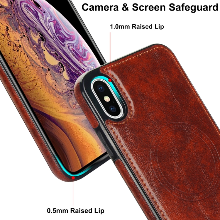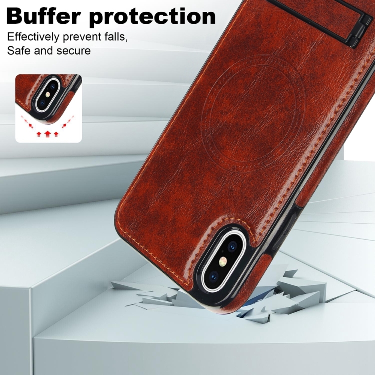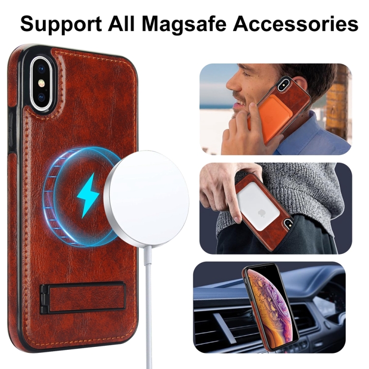 Funda de teléfono iPhone X Xs Magsafe con soporte invisible de cuero retro (Marrón)