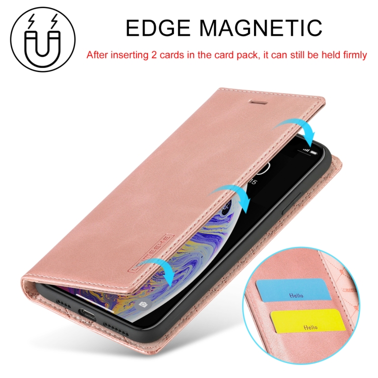 Funda para iPhone X Xs Lc.Imeeke Flip Horizontal a Prueba de Golpes Mate TPU + PU con Soporte y Ranuras (Oro Rosa)