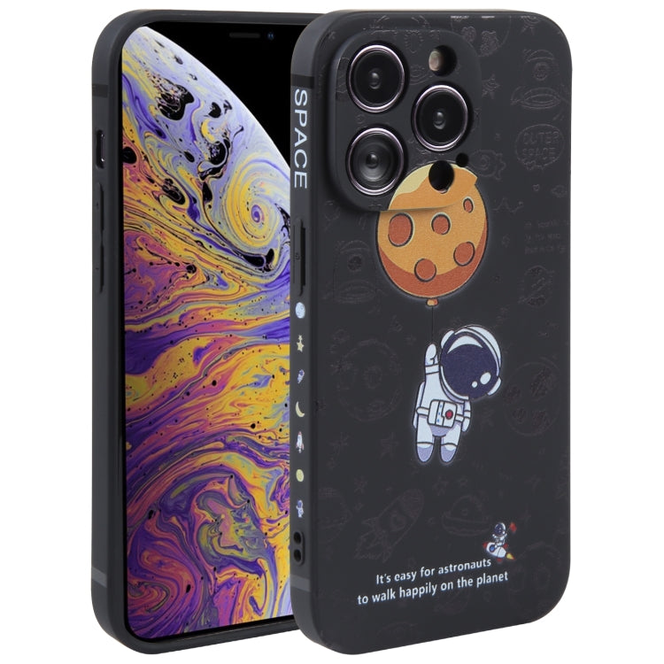 Funda de teléfono iPhone X Xs de silicona borde recto patrón Astronauta (Planet Landing-Black)