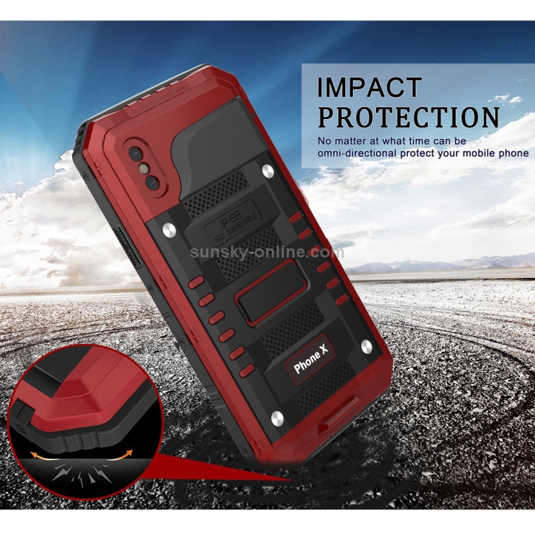 Funda para iPhone X Xs Aleación de Zinc Resistente Agua Polvo Golpes con Silicona (Rojo)
