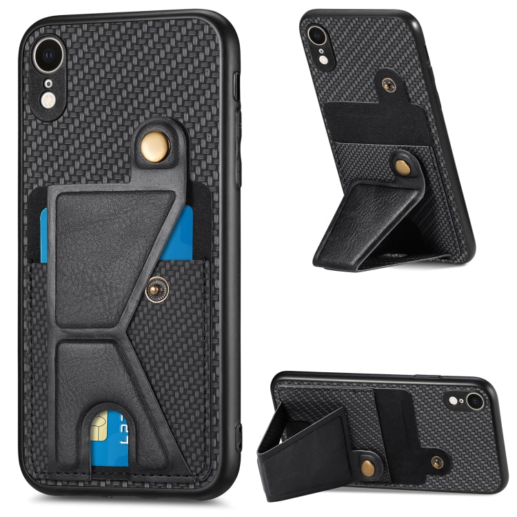 Funda para Teléfono iPhone Xr Carbon Fiber Wallet Flip Card con Soporte en Forma de K (Negro)