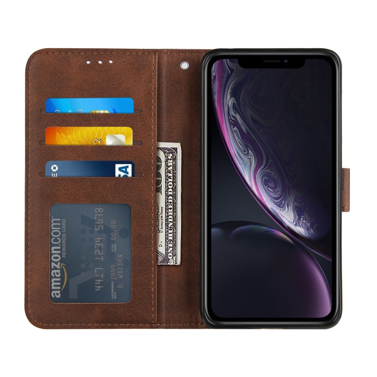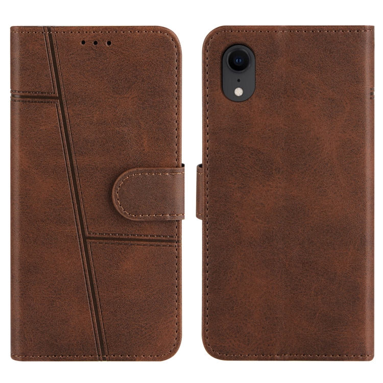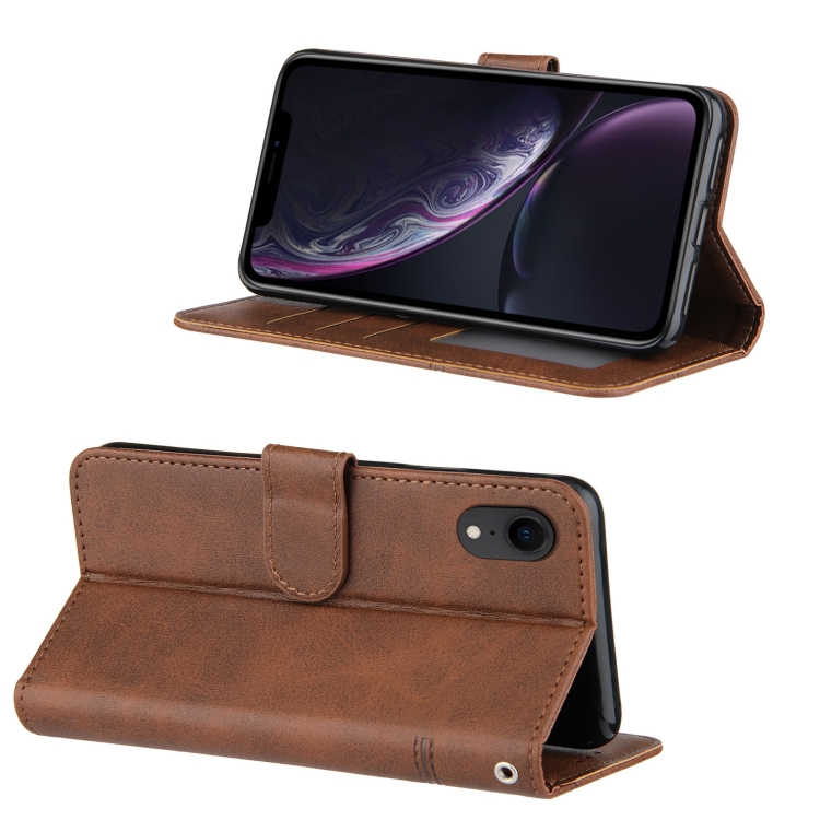 Funda de Cuero para iPhone Xr Costura Textura de Becerro Hebilla con Tapa Horizontal Soporte Ranuras para Tarjetas Billetera Cordón (Marrón)